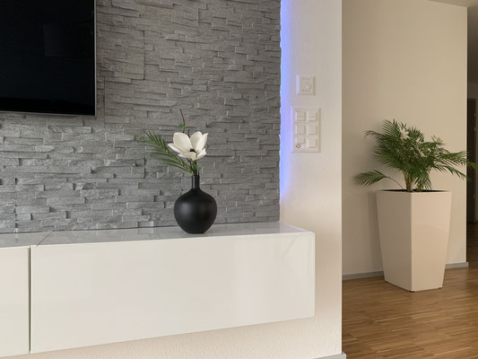 Pflanzen sind eine wunderbare Möglichkeit, Lebendigkeit in die eigenen vier Wände zu bringen. Sie hauchen einem Raum Frische ein und stellen eine Verbindung zur Natur her. Hier haben wir Akzente gesetzt und dem Bewohner ein bisschen optische Natur in das gemütliche Heim gebracht und dies fast ohne Pflegeaufwand.