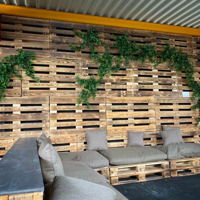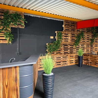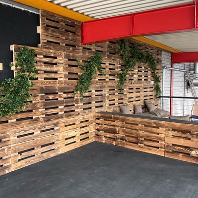 Echte Pflanzen in dunklen Räumen können kaum überleben. Deshalb ist Crossfit Quivelda Weinfelden an uns getreten um eine natürliche Lösung zu finden. Mit dem Efeu an den Paletten und den punktuellen modernen Gefässen mit Palmenblätter und Gräser, wurden die Räume nochmals aufgewertet.
