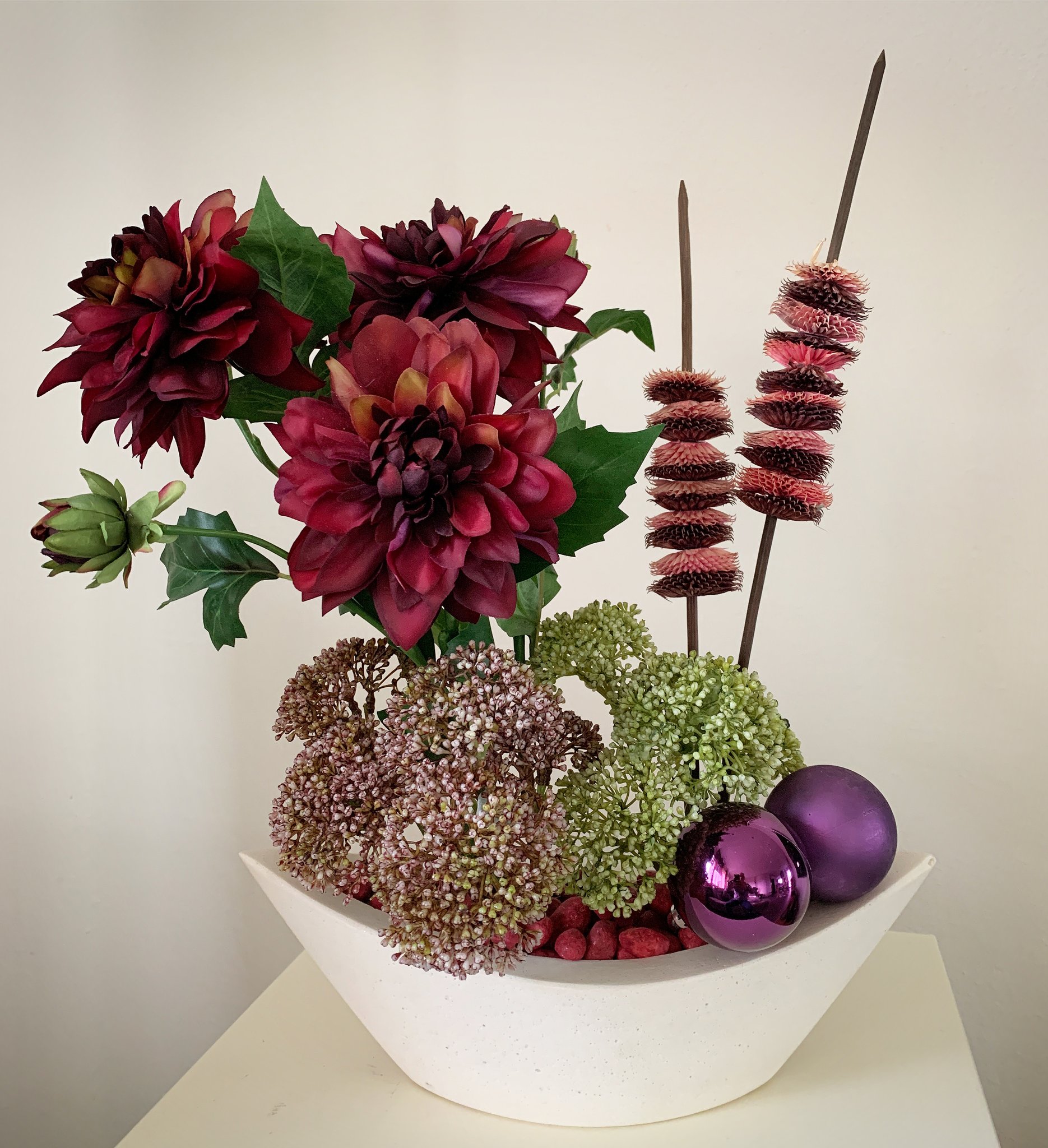 Mit viel Sorgfalt und einem Auge fürs Detail haben wir die Kunstblumen so arrangiert, dass sie den ursprünglichen Charakter der Dekoration bewahren und gleichzeitig eine pflegeleichte, ästhetische Lösung bieten. Unsere Kunstblumen zeichnen sich durch ihre naturgetreue Optik aus, wodurch die harmonische und einladende Atmosphäre im Altersheim erhalten blieb.
